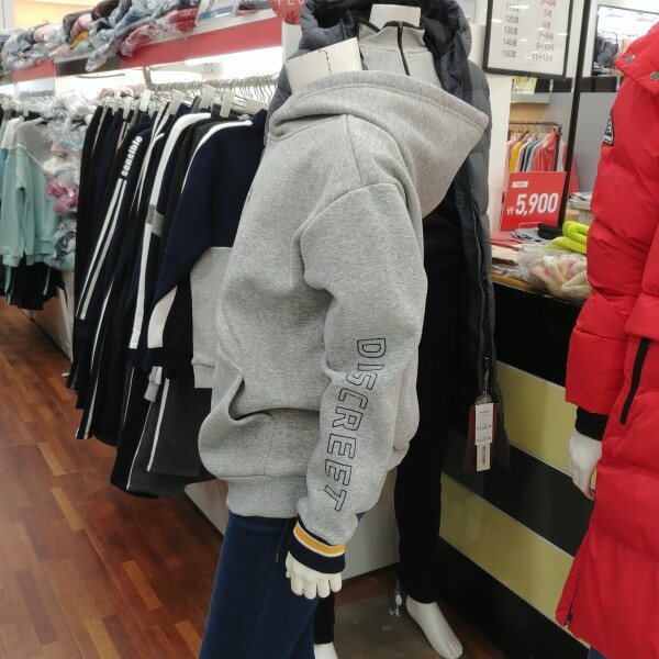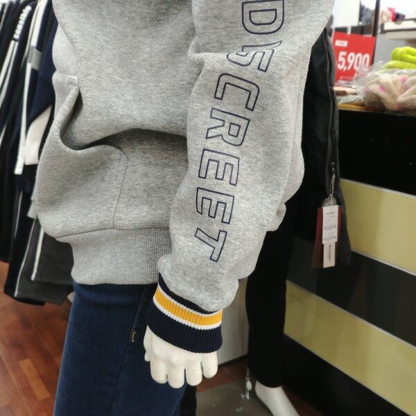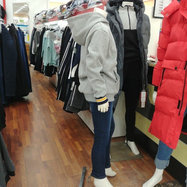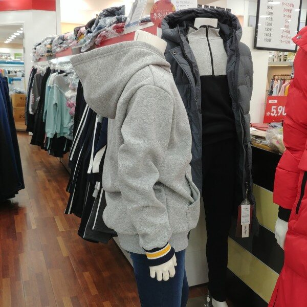 그레이 바탕에 부드러운 짧은 밍크가 아담합니다.포근함이 남다른 후드 티입니다.소매 끝 부분의 칼라 포인트와 소매 라인의 로고가 은근 돋보입니다.남녀 공용입니다.