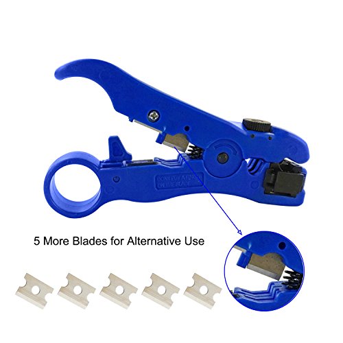 - Equipped with coaxial cable stripper, round cable stripper, cutter, flat cable stripper and 5 sharp blades.