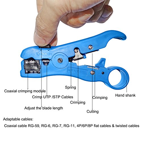 Universal Cable Stripping Tools, Coaxial Cable Strippers Multifunctions Cable Cutters Wire Strippers for CAT5 CAT6 Flat or Round STP/UTP Cable Stripping Hand Tool for RG59/6/7/11