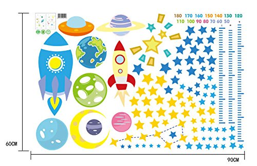 -. Title : Wallpark Cartoon Space Universe Rocket Stars Moon Height Sticker, Growth Height Chart Measuring Removable Wall Decal, Children Kids Baby Home Room Nursery DIY Decorative Adhesive Art Wall Mural