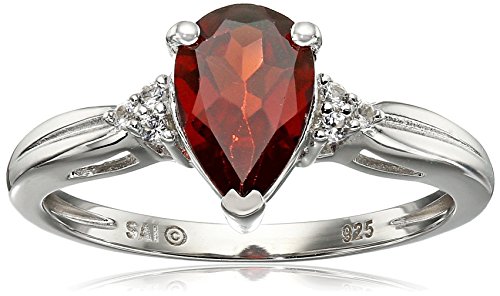 -. Title : Sterling Silver Garnet and Lab White Sapphire Pear Shape Ring, Size 7