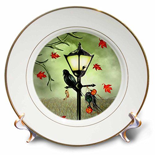 3D Rose Halloween Crow-Street Lamp-Black Widow-Jack Lanterns-Shrunken Head Porcelain Plate, 8"