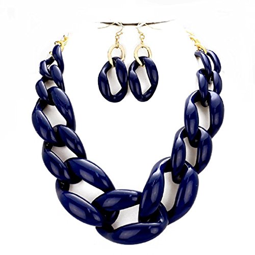 Chunky Style, Statement Light Weight Navy Blue resin, acrylic curb chain necklace earrings set