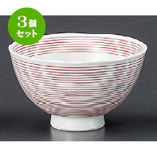 원본상품명: 3個セット 飯碗(磁器) 赤千筋飯碗小 [102 x 59mm] 和食器 料亭 旅館 ?食店 業務用