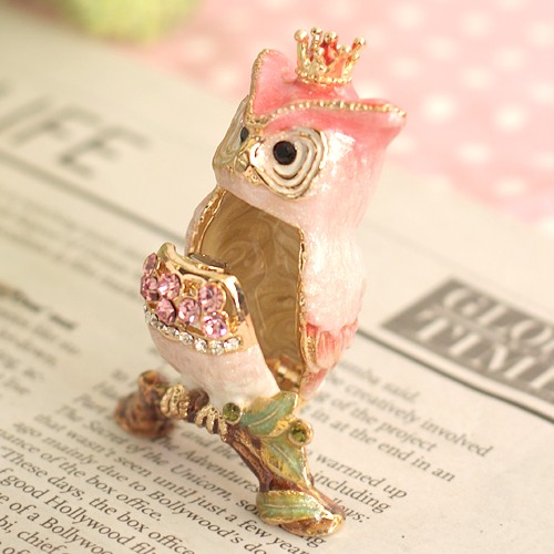 | ジュエリーボックスと言えば、指輪やピアス、ネックレスなどのアクセサリーを入れる引き出し型のケースを思い浮かべる方が多いかもしれません。 ピィアースのジュエリーボックスは、動物や花などをモチーフに作られ、合金製でずっしりとした重さがあります。また高品質のクリスタルガラスを贅沢に使用。まるでジュエリーボックスそのものが宝石のような、高級感溢れる仕上がりです。 小物入れとしても使えるように開閉口には磁石が取り付けてあり、アクセサリーなどなくしやすいアイテムの収納ができます。キラキラと美しく輝く宝石箱は、そのまま飾って楽しめるインテリア雑貨として多くの方に愛されています。 国内トップクラスのジュエリーボックスメーカーであるピィアースは、2004年ごろから本格的に宝石箱の製造を始め、現在のジュエリーボックスはなんと300種類以上。大規模展示会でもご好評いただいており、全国有名百貨店でも販売されています。 自社工場でひとつひとつ丁寧に手作りし、原型作成、研磨、加工、着色、小さなクリスタルガラスの取り付けなども全て手作業で行われるこだわりのハンドメイド品。完成後は厳しい検品の後、丁寧に梱包作業をしお客様にお届けしております。 ピィアース商品は、全国有名百貨店および全国有名宝石店チェーンにてお取り扱いいただいている高品質商品です。 ★自分へのご褒美に…コレクションして並べて飾ると、さらにかわいらしさUP! ★恋人へのプレゼント…中にアクセサリーを入れて、サプライズな贈り物として ★家族への感謝ギフト…お母さんや姉妹へ、日頃のありがとうの気持ちを込めて ★誕生日プレゼント…お友達の喜ぶ顔が見たいから、いつもと違うキラキラギフトを ★小さな女の子へ…まるでお姫様が使っているようなキラキラ宝石箱は女の子の憧れ! |