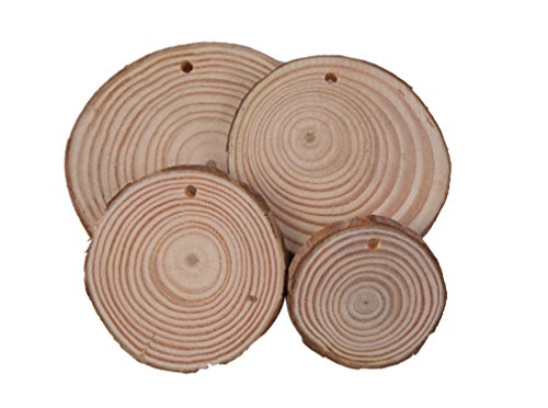 TSJ Predrilled Round Blank Wood Discs with Barks Bulk for Crafts 20 Pieces Unfinished Natural Pine Wood Christmas Ornaments to Paint