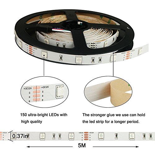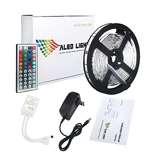 ALED LIGHT® 16.4ft/5M SMD 5050 150 LEDs Non-Waterproof RGB Color Changing LED Strip Light Set, X'mas Chrismas Light Set(44 Key IR Remote + Reciever + 12V 2A Power Supply+Product Manual)