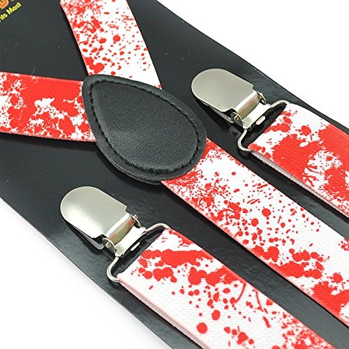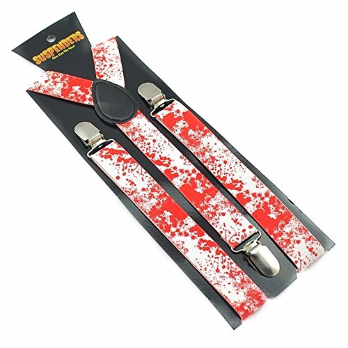 (Suspenders)/Accessories/Suspenders Cummerbunds/DIRECT FROM USA/Crazy Red/White Splatter Halloween Vampire Blood Clip on Suspenders 2.5cm (1") Width