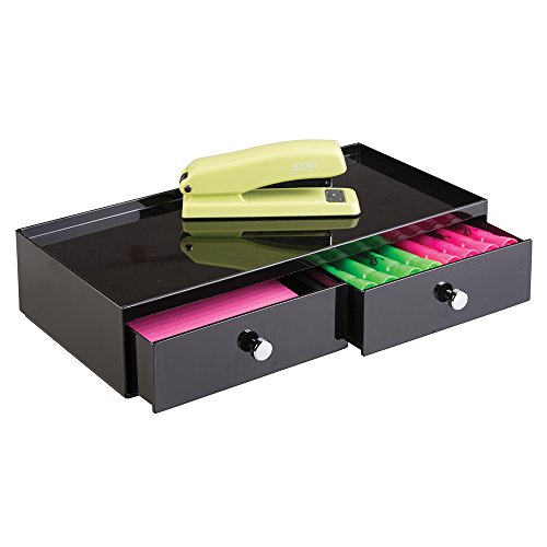 mDesign Office Supplies Desk Drawer Organizer for Staplers, Pens, Markers, Highlighters, Tape - 2 Drawer, Wide, Black
