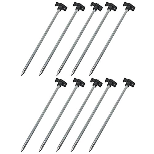Large 10" Galvanized Steel Tent Peg Stake Nail with T-Top - Heavy-Duty 8mm Diameter Non-Rust with black Stopper (10-Pack)
