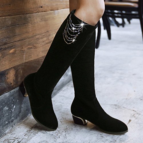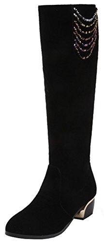 Binding : Apparel Product Description The pair of right shoes can make all the difference. The boots season comes. A pair of long boots is a must-have for a lady who want to be impressed in the crowed. If you're trying to get boots that will send a message with your every step, there's no finer footwear to add glamour close to you than these tall boots from Mofri. These boots don't whisper; they scream with their distinctive and trendy design. This pair of boots make you stand out in any crowd and are sure to heat things up no matter what you wear with them. The block heels raise your height and giving the shoes a chunky shape that is reflection of the latest trends. These shoes from Mofri is made from top quality vegan synthetic leather. Leave those boring basic boots behind. Make this pair boots as your fashion secret weapon and you'll be able to have some sexy appeal which will be the soul of your everyday ensembles. Order a pair in your favorite color! Can't decide? Why not get more? You'll still pay less than the price you would for a single designer pair elsewhere. We will make you always be on the cutting edge of women' s fashion. Mofri is a legal trademark which has registered in United Stated Patent Trademark Office. All right reserved. 0
