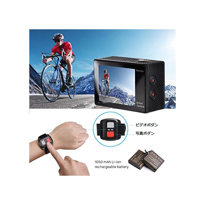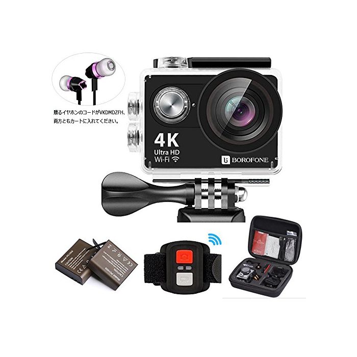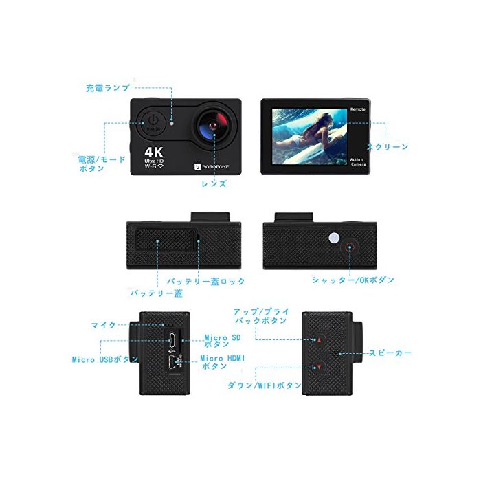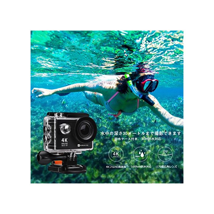 원본상품명: BOROFONEスポツカメラ 1080P 4K WIFIフルHD防水ビデオカメラ 12MPダイビングカメラ 30メトル防水2インチLCD液晶面170度角 無線リモコン 空撮やスポツに最適 二
