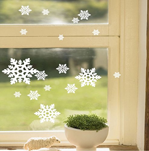 Pack of 21 Pcs White Glitter Snowflakes Shop Window Decorations Peel & Stick Wall Decals Wall Removable Vinyl Decals Girls Room Decor Art Quotes Stickers for Christmas Paper Ornaments