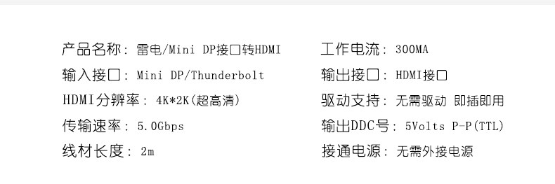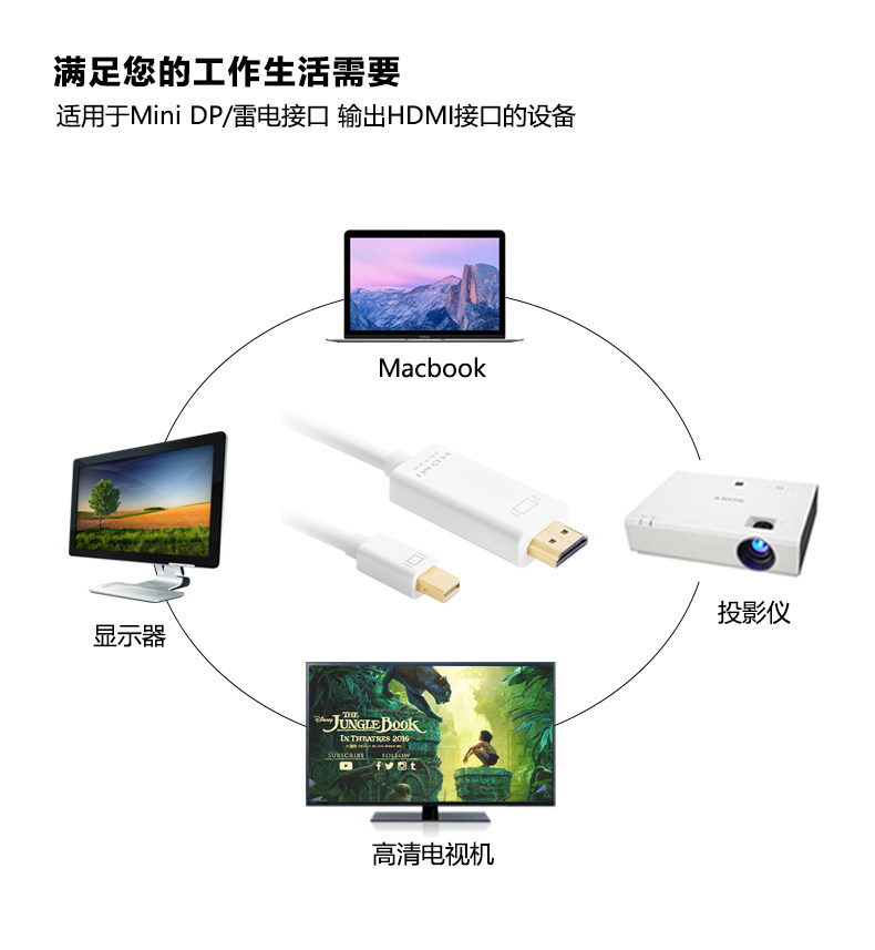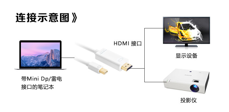 苹果MacBook笔记本电脑雷电MiniDP转HDMI连接线转换器电视投影仪