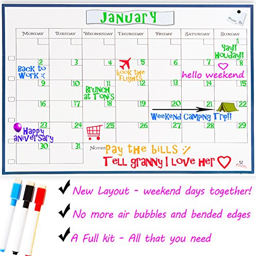 NO MORE CONFUSION - SEE and PLAN YOUR WEEKEND AS ONE UNIT. This Monday to Sunday erasable calendar board is just what you need for family organization, class schedule and office planning. “My List” magnetic notepad will help you keep track of yours to do tasks. See Your Events At a Quick Glance