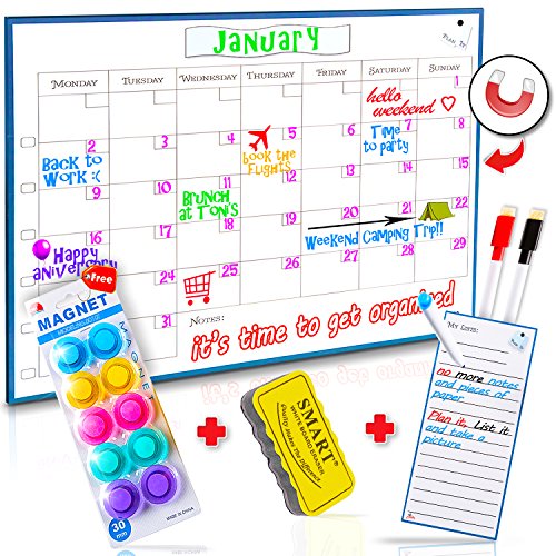 NO MORE EXCUSES – Don’t forget, double book and loss track of your events. With this monthly magnetic calendar, it’s easy to keep track of your plans and stay focus. The perfect tool and exactly what you need to get yourself organized and synchronized with others. Don’t waste paper and don’t forget a thing - Plan it, Write it, Maintain it Within Sight
