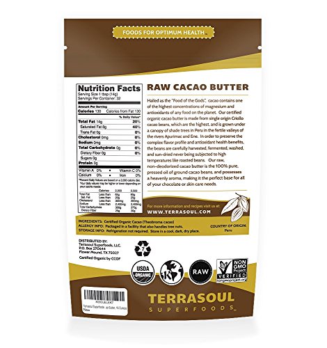 Terrasoul Superfoods Raw Cacao Butter (Organic), 1 Pound