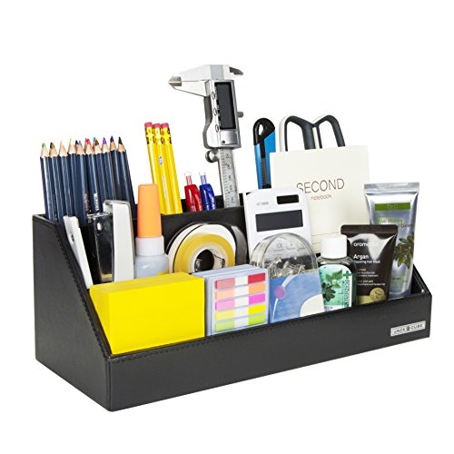 JackCubeDesign Leather Remote Control Office Desk Stationery Organizer Supplies Storage Box Case Caddy Tray Cosmetic Display Organizer Holder Phone Stand(Brown, 11.8 x 5.3 x 4.7 inches)-MK279B