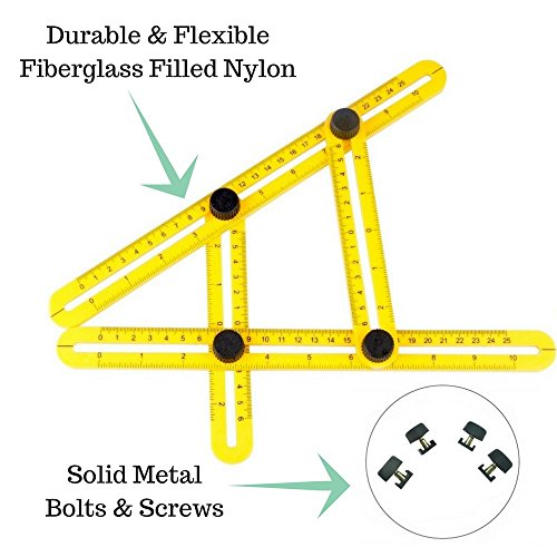 New and Improved Design Professional Multi-Angle Template Tool ABS Ruler with Heavy-Duty Aluminum Knobs for Handymen, Builders, Craftsmen, DIY Projects (Yellow - 1 Count)