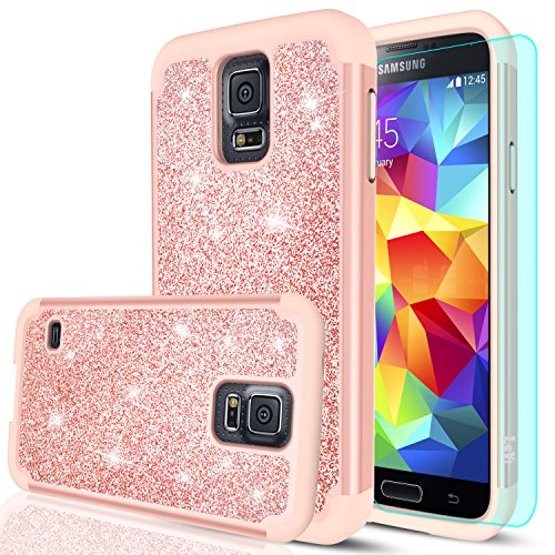 -. Title : Galaxy S5 Glitter Case with HD Screen Protector,LeYi Bling Cute Girls Women Design [PC Silicone Leather] Dual Layer Heavy Duty Protective Phone Case for Samsung Galaxy S5 TP