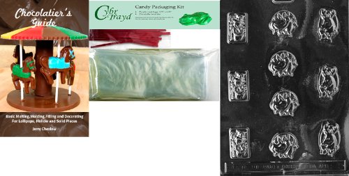 Cybrtrayd Assorted with Snowman Chocolate Mold with Chocolatier's Bundle of 25 Cello Bags, 25 Red Twist Ties and Chocolatier's Guide