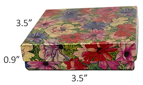 - Feature : Novel Box Kraft boxes provide a contemporary natural material look and are available in 17 different colors - Black, Blue, Chocolate, Yellow, Green, Light Blue, Light Green, Pink, Kraft, Purple, Red, Gold, Silver, White Swirl, Leopard Print, Metallic Floral and Tropical Floral. / Measures 3.5" X 3.5" X 0.9" and are sold in a pack of 15 boxes. Ideal for crafts, party favors, jewelry, gifts and much more. / Novel Box Cotton-Filled boxes are proudly made in the U.S.A. using FSC/SCI Certified Fibers. The boxes are recyclable and come with a 100% Eco-Fiber non-tarnishable removable cotton bedding that provides cushion for your items. / Novel Box drawstring pouch included