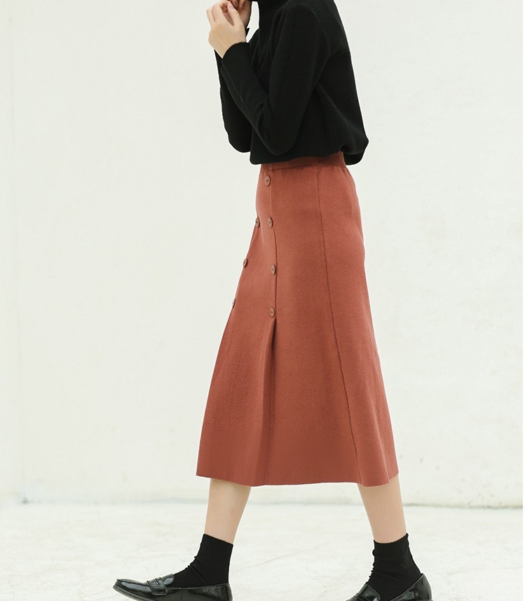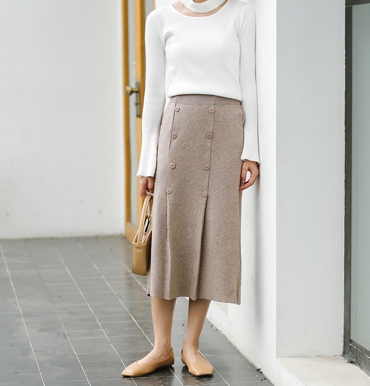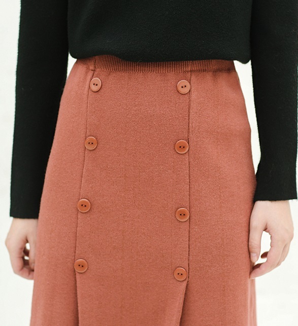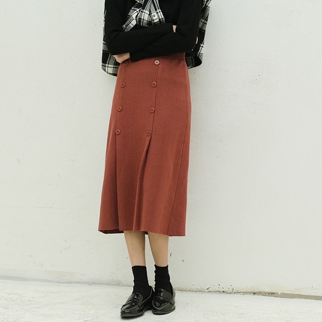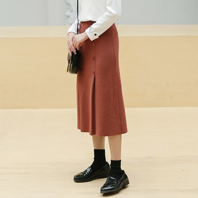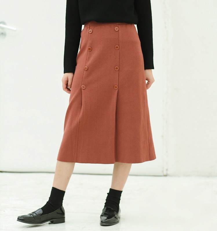 トレンドの前ボタンデザインのミモレ丈スカートです♪