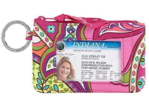 Vera Bradley Zip Id Case and Lanyard in Pink Swirls