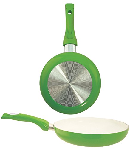 No more harmful toxins or chemicals. FDA approved completely no harmful chemicals frying pan provides excellent nonstick cooking experience and scratch resistant. Stylish green exterior and white interior design gives a wonderful look to your new healthy fry pan. 9.5 inch, Ceramic coated aluminum with heat resistant handle.Feature