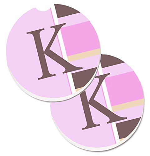 Caroline's Treasures Letter K Initial Monogram - Pink Stripes Set of 2 Cup Holder Car Coasters CJ1005-KCARC, 2.56, Multicolor