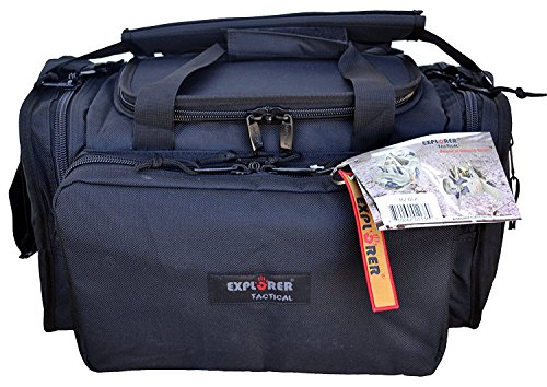 -. Binding : Misc. -. Brand : Explorer -. Feature : Seven magazine pouches in front compartment and four magazine pouches in the rear compartment. / Adjustable/Removable inner partitions to customize main compartment to individual liking. / Extra Large Range Bag Exterior Dimensions 18" x 14" x 10", Interior main compartment Dimensions 12" x 12" x 9", Includes 2 zipper handgun pouches exterior dimensions: 13.5"x 1" x 7.5". -. IsAutographed : 0 -. IsMemorabilia : 0 -. Label : Explorer -. Manufacturer : Explorer -. ProductGroup : Sports -. ProductTypeName : SPORTING_GOODS -. Publisher : Explorer -. Studio : Explorer -. Title : Explorer Shooting Gun Range Bag AND Free Gun Pouch