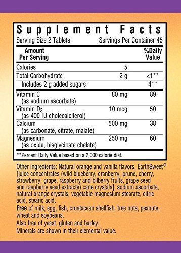 Contains Calcium, Magnesium, Vitamin D3 and Vitamin C in Orange Vanilla Flavored Chewables