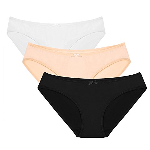 -. Feature : Durable fabric 92% Polyamide/8% Elastane offers a soft and smooth feel / Low-rise bikini panty in seamfree,lightweight and comfortable construction / Cotton gusset,Full rear coverage / Assorted 3 colors:Black,Beige,White in a package.Machine Wash / For string bikini,please search "EK003735" on Amazon; For matching thong,please search "EK001664" on Amazon