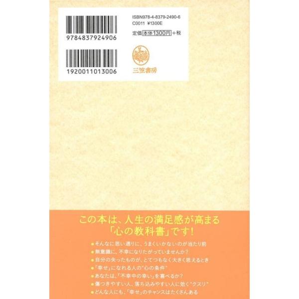【商品基本情報】 商品名称:幸せなフリをする人不幸にしがみつく人の心理 著者/出版社:加藤 諦三/加藤 諦三 初版発行日:2013/03/15 サイズ:B6判 ページ数:253 ISBN/JAN:9784837924906/4528189386600