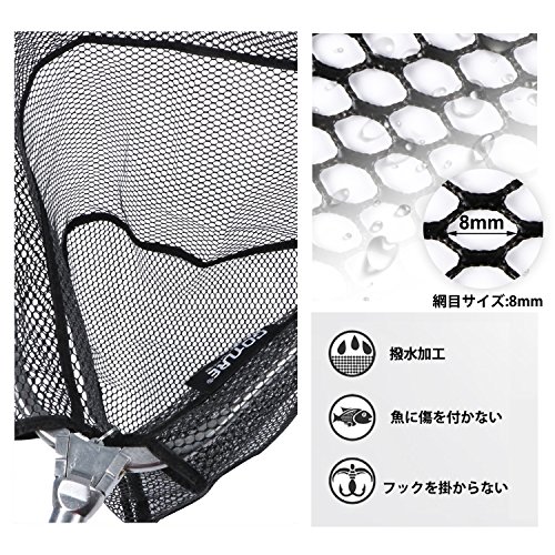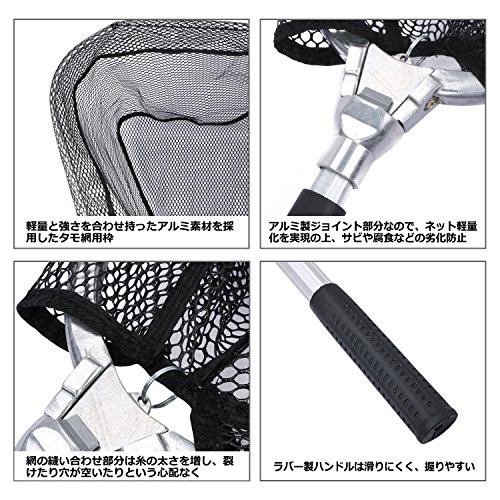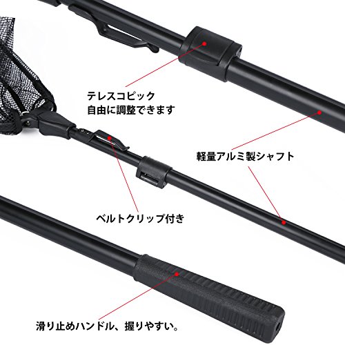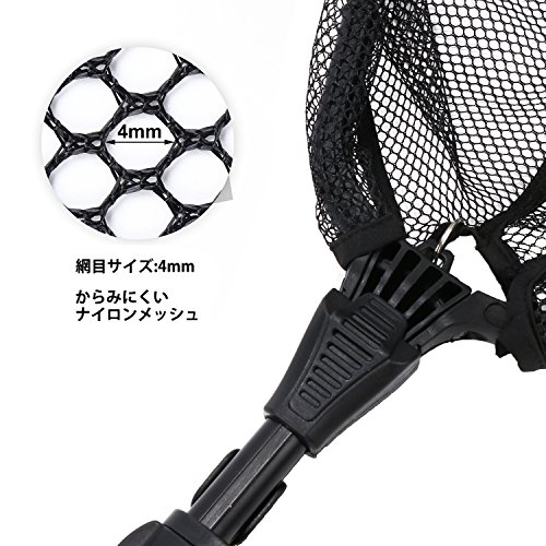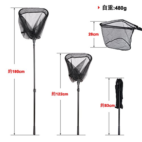 -. Feature : ◆本体:アルミ+高強度プラスチック ◆ネット:柔らかなナイロン素材 / ◆ネット含む全長:120cm~180cm(シャフト長:75cm~135cm) / ◆折畳み寸法:幅10cm 長さ83cm / ◆ネット深さ28cm ◆ネット幅(最大部):40cm ◆綱目4mm / ◆製品重量:480g ◆カラー:ブラック