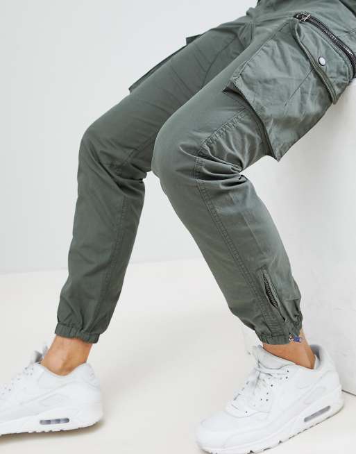 River Island Skinny Fit Cargo Pants In Khaki