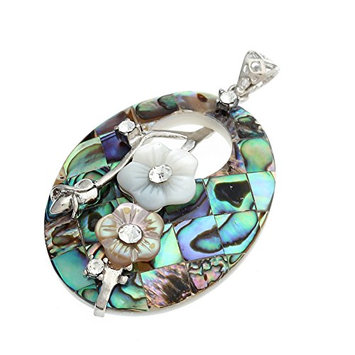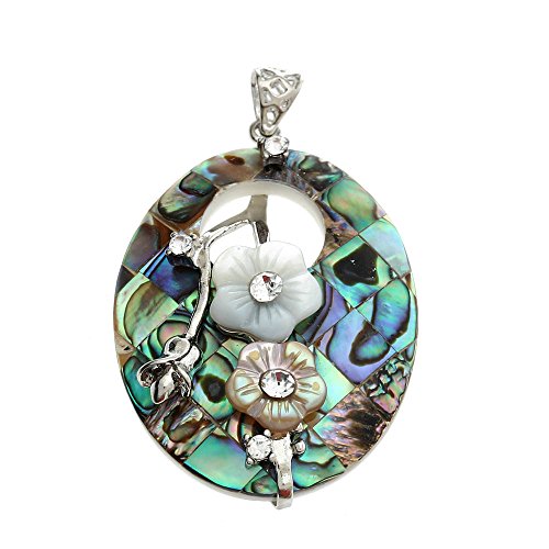 BRCbeads Top QUality Fashion Oval Hollow Flowers Paua Abalone Shell Pendant Bead For Necklace Making 2x1.4"