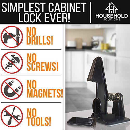 Studio : Household Solutions Publisher : Household Solutions Binding : Baby Product Product Description Household Solutions Child Safety Cabinet Latch Locks --Your first choice in baby proof technology because of our commitment to our customers and constant desire to exceed expectations. Children's neverending curiosity unfortunately can put themselves in danger, our baby proofing locks will help you have one less threat to worry about by protecting your cabinets, drawers, and closets. Based on customer feedback we've updated our cabinet locks to include buckles , not all drawers have a crossbeam across the top making it difficult for the latch to attach correctly. However, with our improved 2017 design, the addition of the buckle enables our safety latch to work on all cabinets and drawers.