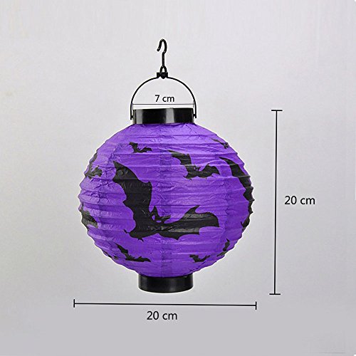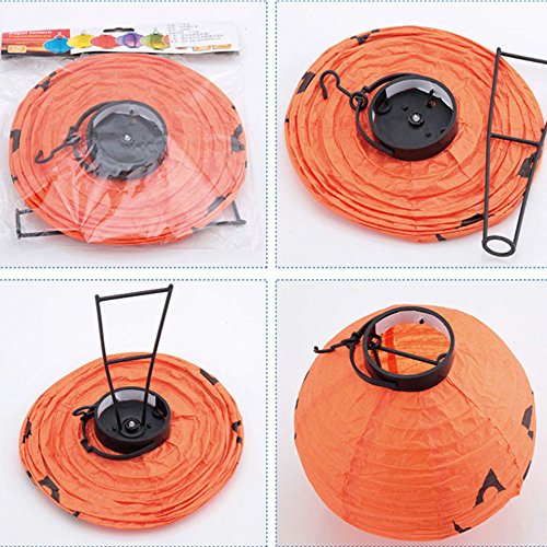 -. Feature : Halloween Pumpkin Lantern:Formed by high quality foldable paper,easy to pack up,not easy to tear up,has a metal frame that easily expands / Powered by 2 AAA batteries (not included),low power consumption and environmentally friendly,more durable,can last for a few seasons / Lantern can be compressed,convenient for carrying,mounted with a LED bulb inside,can not be replaced / Size - Diameter:20cm,Height:22cm,Opening Diameter:7cm,easy to install,as instructed in the product photo #3 / [Spider/Bat/Skeletons/Pumkin Pattern] can create a climate of terror,make your Halloween more interesting,can also be hung from string lights or held by hand