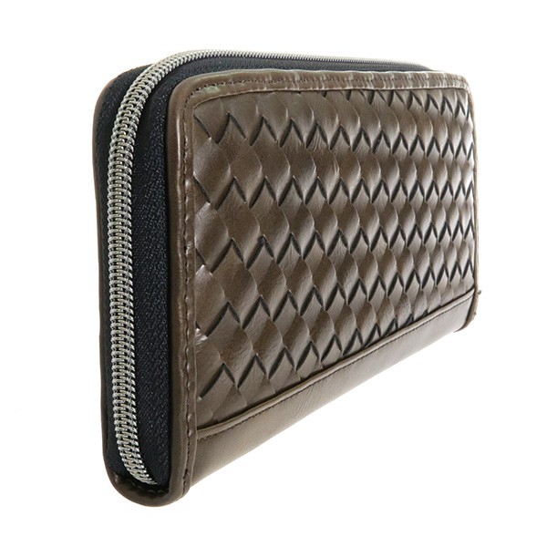 プレイボーイ PLAYBOY 編み込み イントレチャート ラウンド財布 メンズ ブラウン  商品仕様:(約)H10.5×W20×D2.5cm、重さ(約)184g 合成皮革