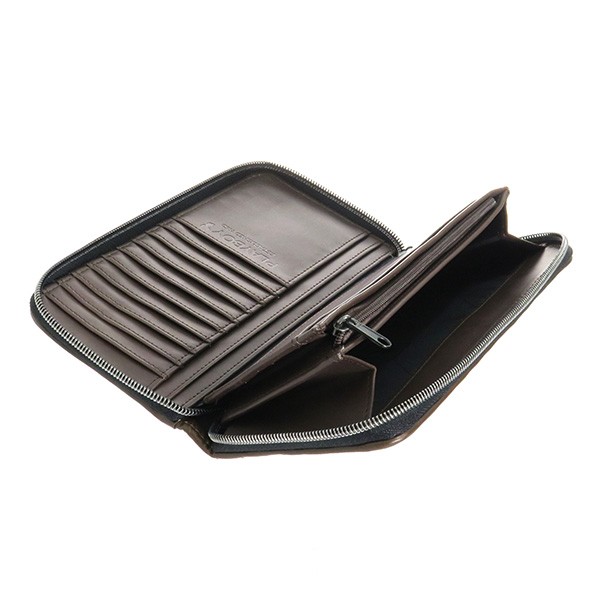 開閉:ラウンドファスナー、内側:札入れ×1、ファスナー式小銭入れ×1、ポケット×3、縦型カード入れ×10、カラー:ブラウン