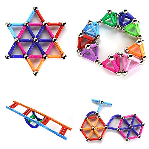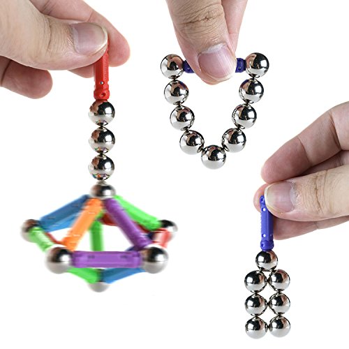 Specifications: Material: ABS plastic sticks, stainless steel balls (not magnetics) Stick Size: 27mm/ 1.06 inch Ball Diameter: 12mm/ 0.47 inch Colors: Mixed colors (Red, Blue, Orange, Green, Yellow) Package including: 81pcsx straight sticks 10pcsx arcuate sticks 45pcsx stainless steel balls
