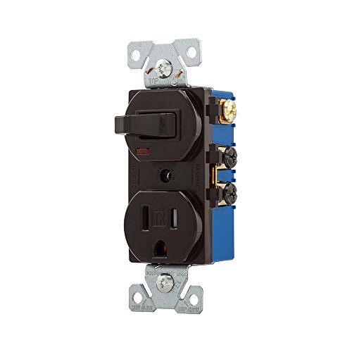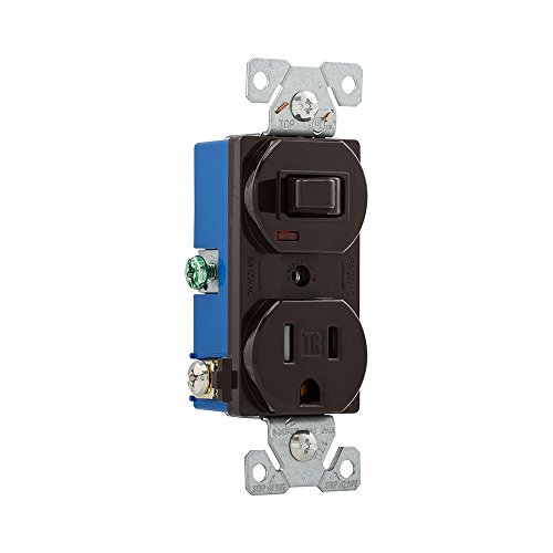 Eaton TR274B 15 Amp 120V 5-15 3-Wire Combination Receptacle & Toggle Switch, Brown