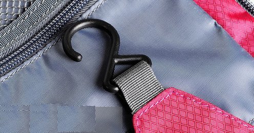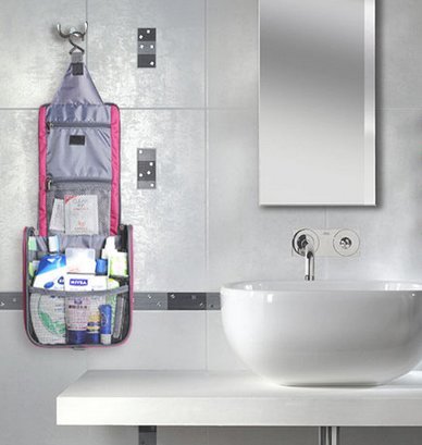 -. Feature : Perfect for organizing your personal, household, and travel items, suitable for both home and travel. / Big capacity and multi-compartment can handle lots , hook design to save space. / Mesh pocket can get ride of hot toileries breather freely, to prevent growth of bacterias. / Folable, portable Moisture-proof, anti-tear and lightweight when travelling or ,waterpoof coating, washable. / Material: Anti-tear Nylon Size: 24cm*18cm*8cm