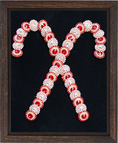 "Candy Cane Lane" - Red and Clear Crystal Brooch Candy Cane Christmas Artwork. 8x10 Inch Wall Decor Framed in a Rustic Black Brown Solid Wood Shadow Box.