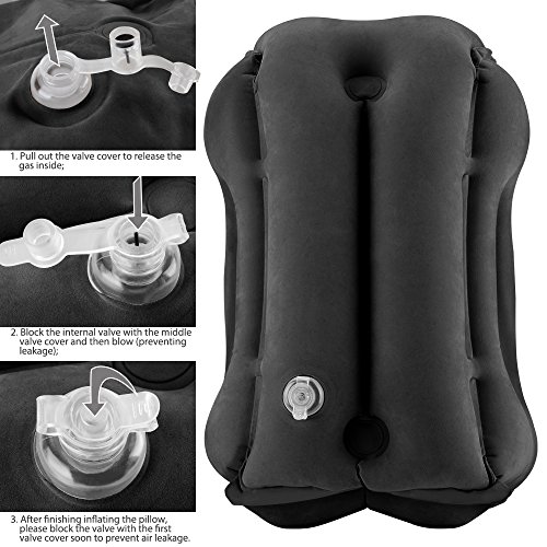 How to use: 1. Upward pull out the valve cover to release the gas inside; 2. Block the valve with the middle valve cover and then blow; 3. After finishing inflating the pillow, please block the valve with the first valve cover soon to prevent air leakage. 0