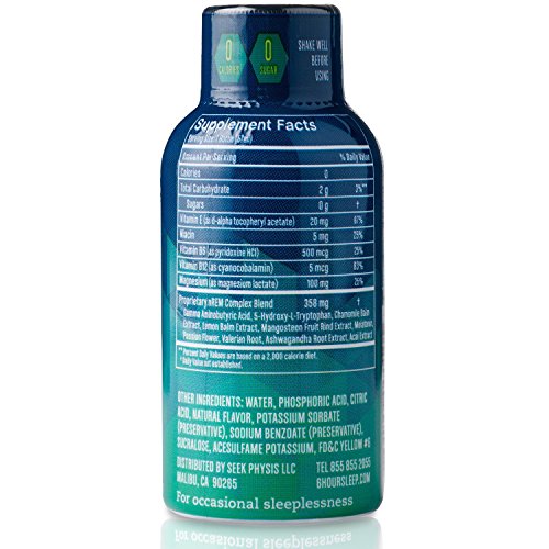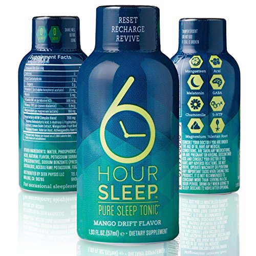 -. Binding : Health and Beauty -. Brand : 6 Hour Sleep -. EAN : 8691990000129 -. Feature : LIMITED TIME OFFER! Receive one case (12 bottles) for just $24.99! (no promo code required). / Completely Drug-free, pure sleep supplement with a blend of 12 essential sleep promoting ingredients, nutrients and minerals, including acai, mangosteen, melatonin, 5-HTP, GABA, chamomile, magnesium, lemon balm, vitamin E, ashwagandha, valerian root, and passion flower. / NO grogginess and Zero Calories. / Our Sleep Synergy Blend engages with your natural rhythms to ease you into consistent and complete sleep cycles. / It tastes great, improves your sleep and best of all, you will wake feeling better than ever! -. IsAdultProduct : 0 -. Label : Seek Physis LLC -. LegalDisclaimer : 6 Hour Sleep is not recommended for long term use, and should not be combined with any medications and/or alcohol. Please consult your doctor should you experience any adverse effects from 6 Hour Sleep. These statements have not been evaluated by the FDA. This product is not intended to diagnose, treat, cure, or prevent any disease. -. Manufacturer : Seek Physis LLC -. MPN : 129 -. PackageQuantity : 12 -. PartNumber : 129 -. ProductGroup : Health and Beauty -. ProductTypeName : HEALTH_PERSONAL_CARE -. Publisher : Seek Physis LLC -. Studio : Seek Physis LLC -. Title : 6 HOUR SLEEP - Liquid sleep aid, the only sleep supplement with 12 proven sleep agents and antioxidants (Contains Chamomile, Melatonin, Magnesium, 5-HTP and more) - 12 pack of 1.93-ounce bottles