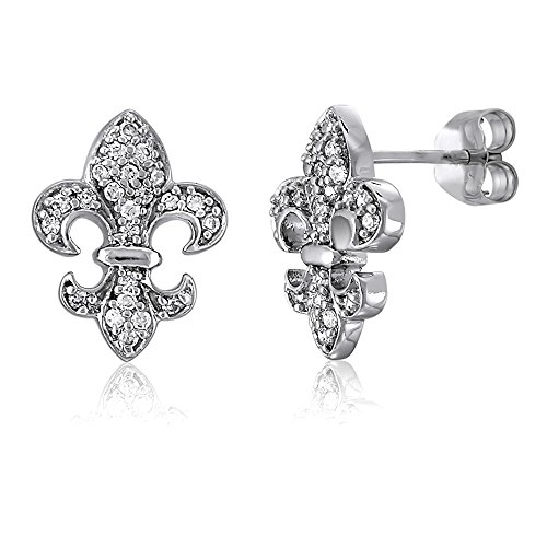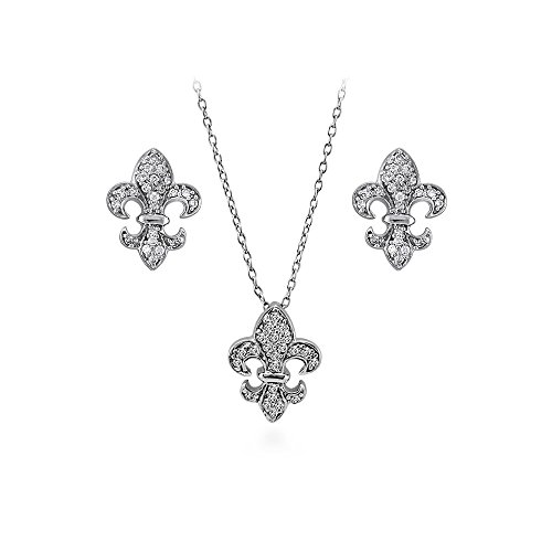 -. Title : BERRICLE Sterling Silver Cubic Zirconia CZ Fleur De Lis Bridal Bridesmaids Necklace and Earrings Set