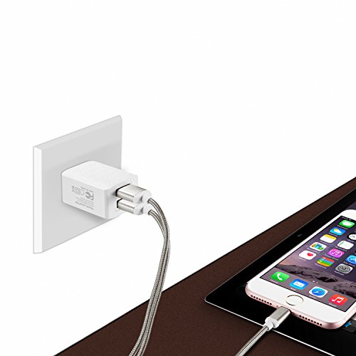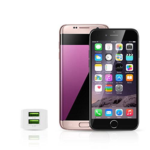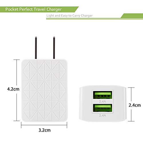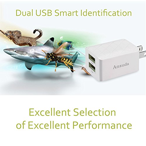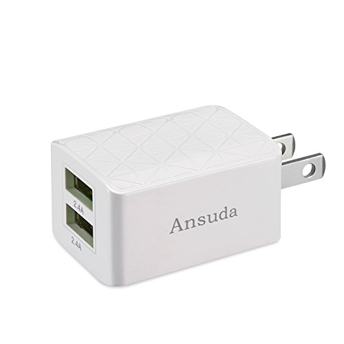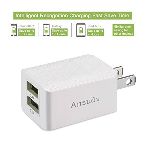 Wall Charger Ansuda 2.4A 12W Dual USB Smart Technology Travel Adapter for iPhone 7 6 6S Plus 5 5S iPad Pro Galaxy S7 S6 Edge S5 Nexus HTC and more. (1-PACK)