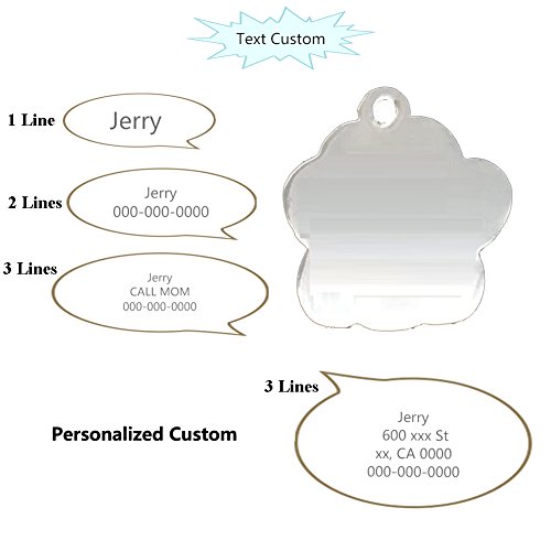 There's plenty of room for all of important information, up to 4 lines on the back of tag. Choose the color you like and leave us your custom text information, and we will send it to you as soon as possible. Please feel free to contact us if you have any issues. 0
